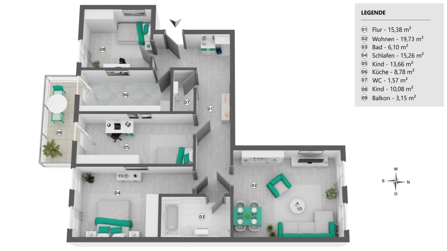 Wohnfläche ca.93,69 m²