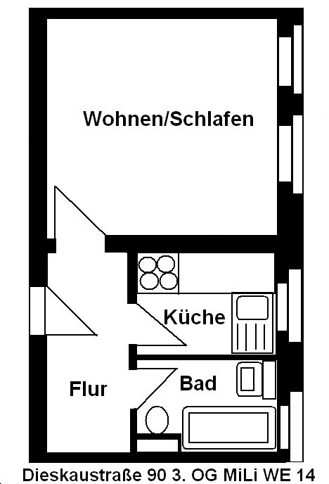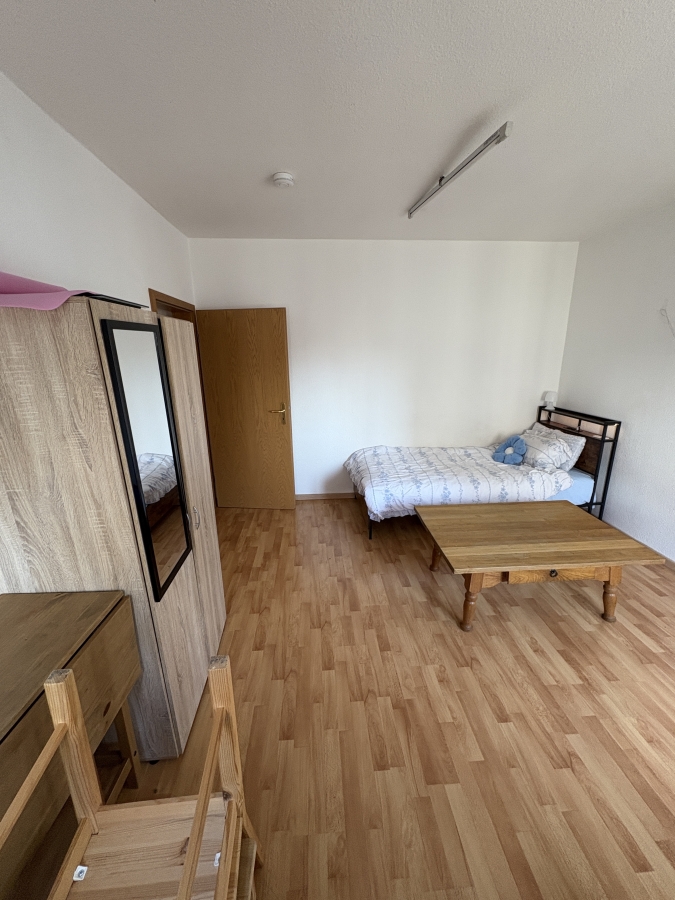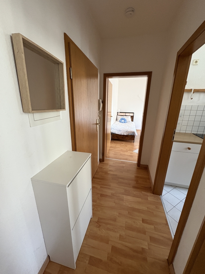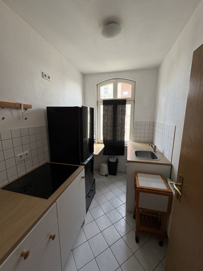 Der praktische Grundriss schafft ein offenes, helles Wohngefühl – ideal für Singles, Studierende oder Pendler. Der Wohn- und Schlafbereich ist mit pflegeleichtem Laminatboden ausgestattet, während Küche und Bad ansprechend gefliest sind. Eine Einbauküche ist bereits vorhanden und kann auf Wunsch von der Vormieterin für einen Preis von 250,- Euro übernommen werden.